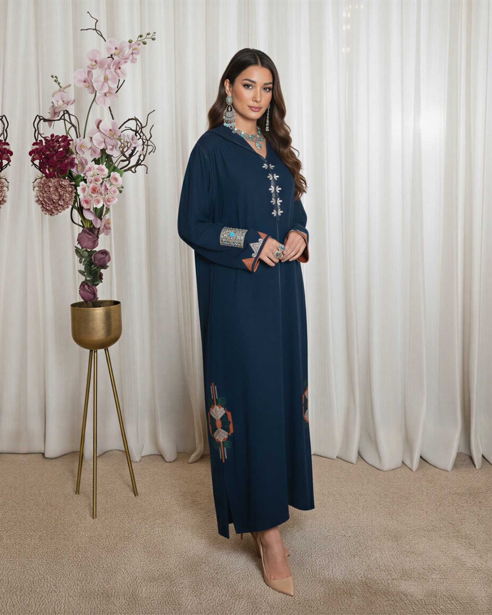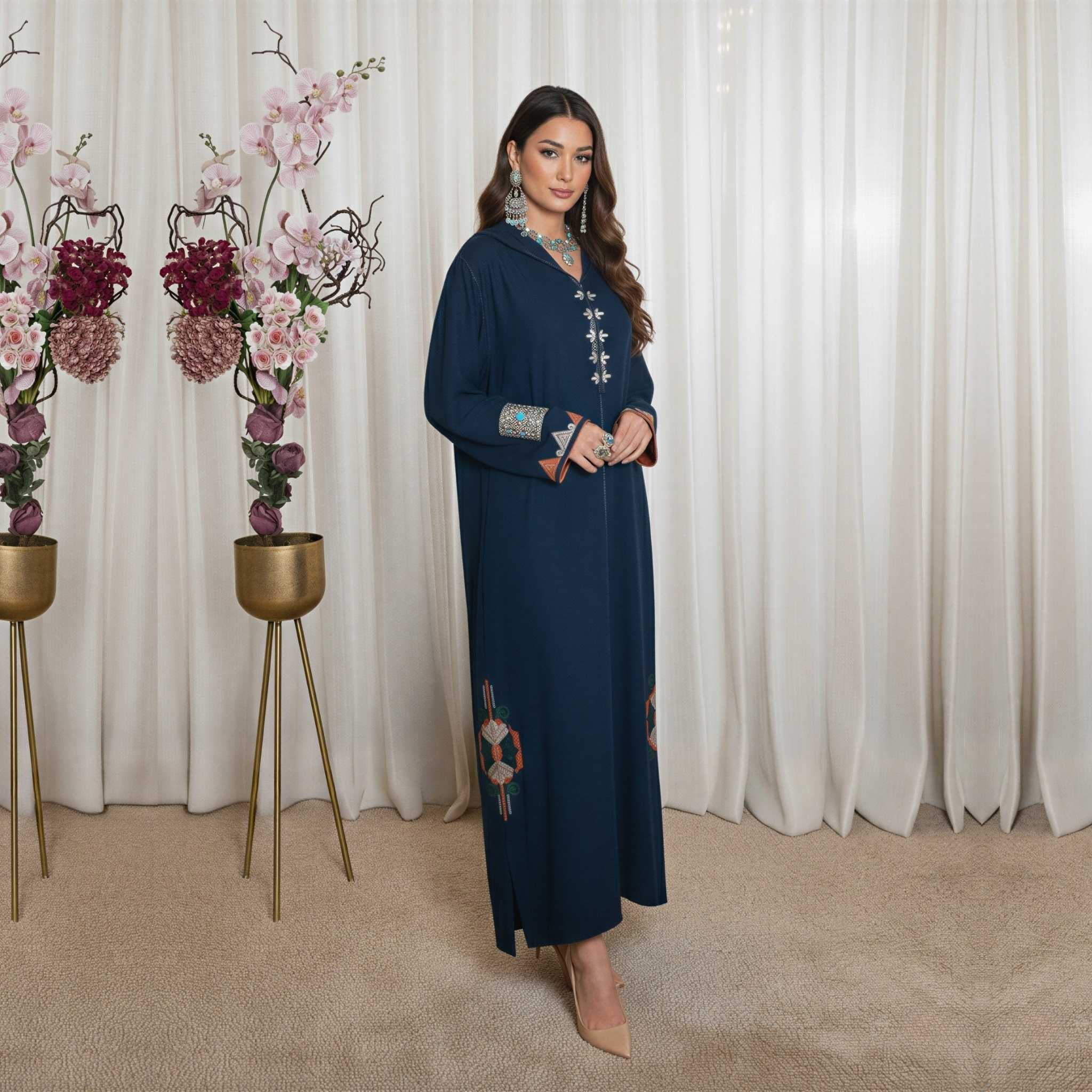 Designed for the woman who seeks elegance in every detail, these djellabas are crafted with the finest fabrics, intricate embroidery, and exquisite embellishments—creating an aura of effortless luxury. Whether for Ramadan gatherings, Eid celebrations, or refined soirées, each design embodies timeless beauty and unparalleled grace.